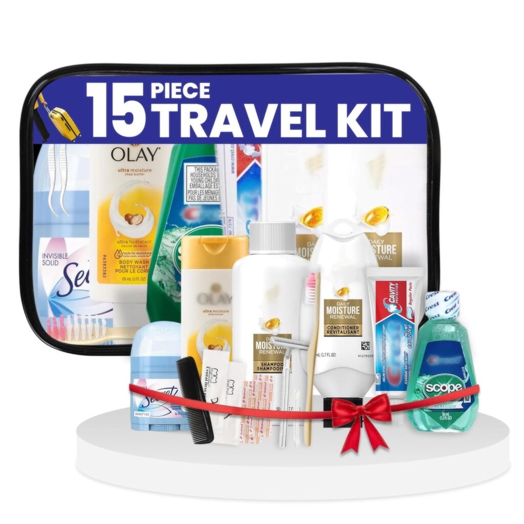 👉 Click here to purchase on Amazon: Convenience Kits International Travel Toiletry Kit and Click here to purchase on Amazon: Cetaphil Face Cleansing Wipes