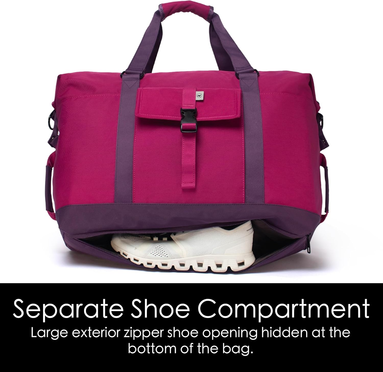 SUNNY BIRD Duffel with Utility Pouch, 40L Weekender Overnight Bag with Shoe Compartment for Travel and Sports (Purple)