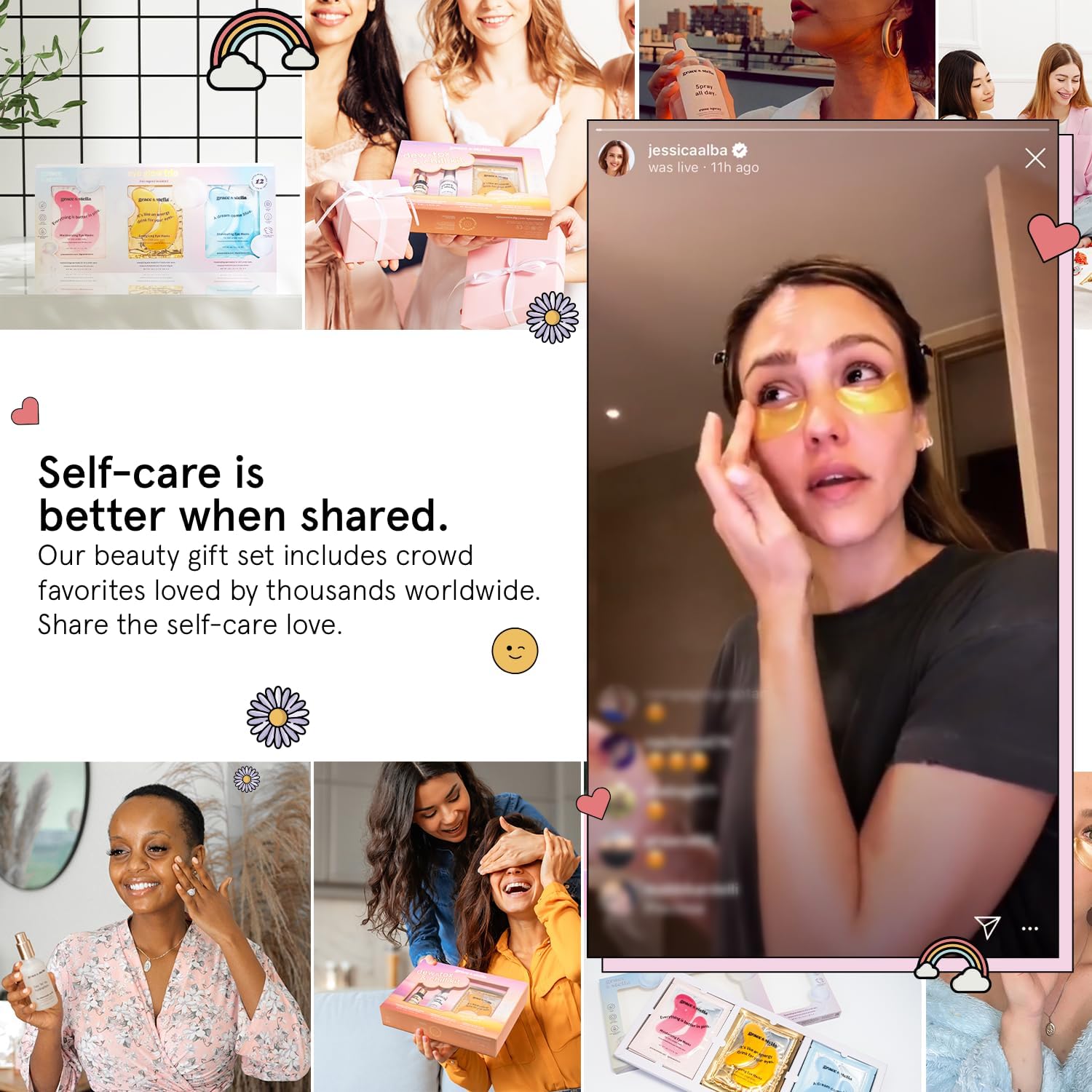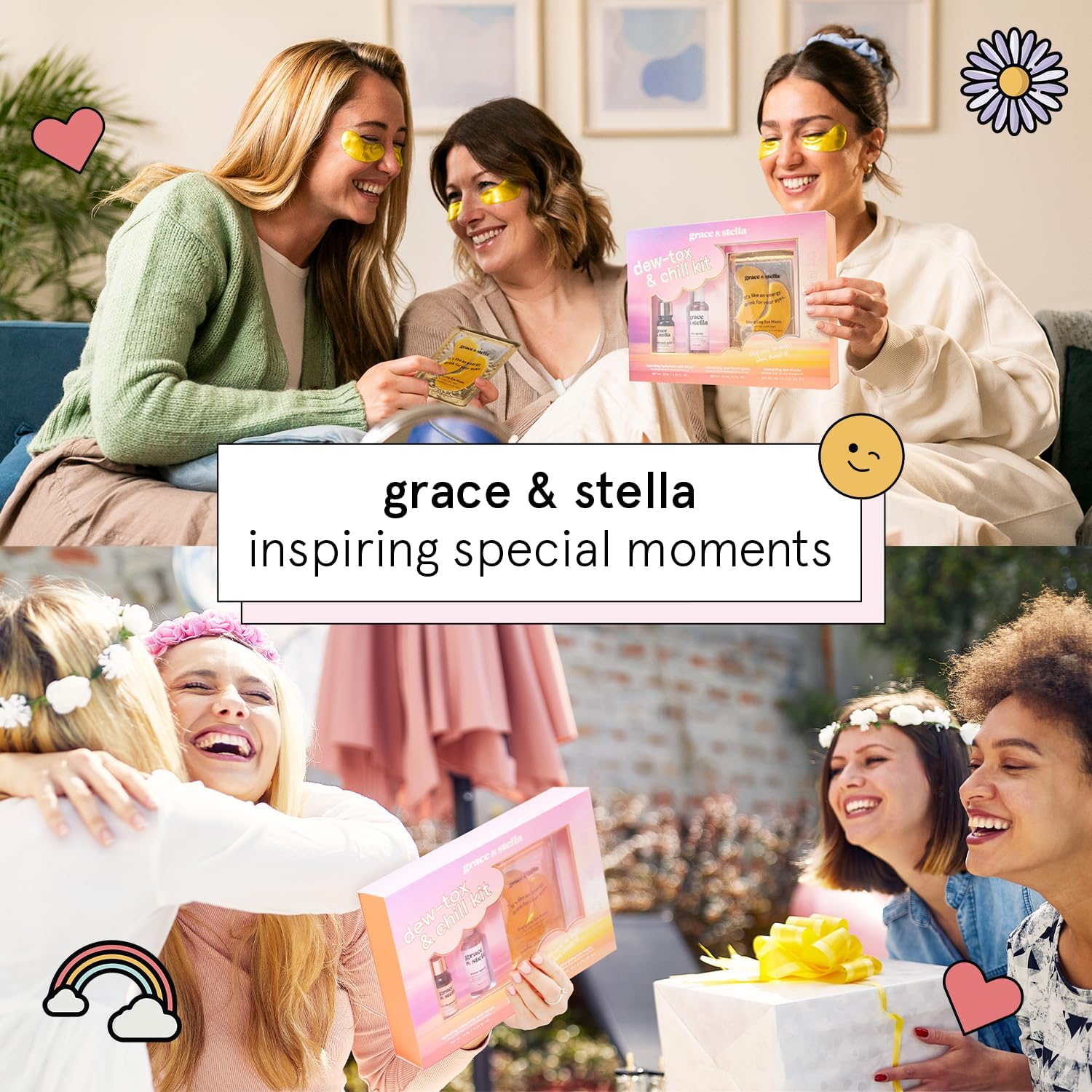 grace & stella Award-Winning Birthday Gifts for Women – Travel Essentials Skin Care Set with Gold Eye Masks, Hyaluronic Acid Serum & Rose Spray – Perfect for Bridesmaids, Girlfriends, Teens- Self Care