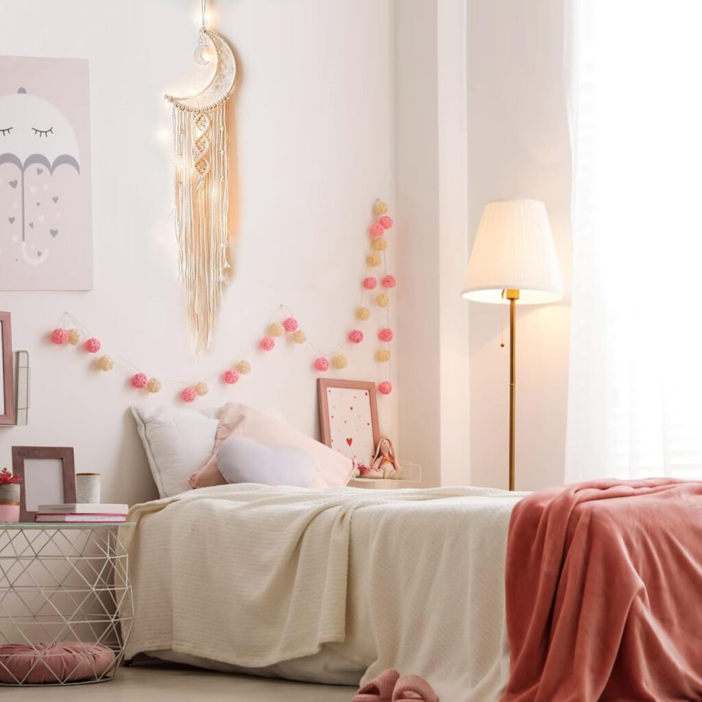 She picked out a boho-style dream catcher with soft neutral tones, feathers, and beads to hang above her bed. Not only does it add a calm, handcrafted feel — she genuinely loves the peaceful symbolism behind it.